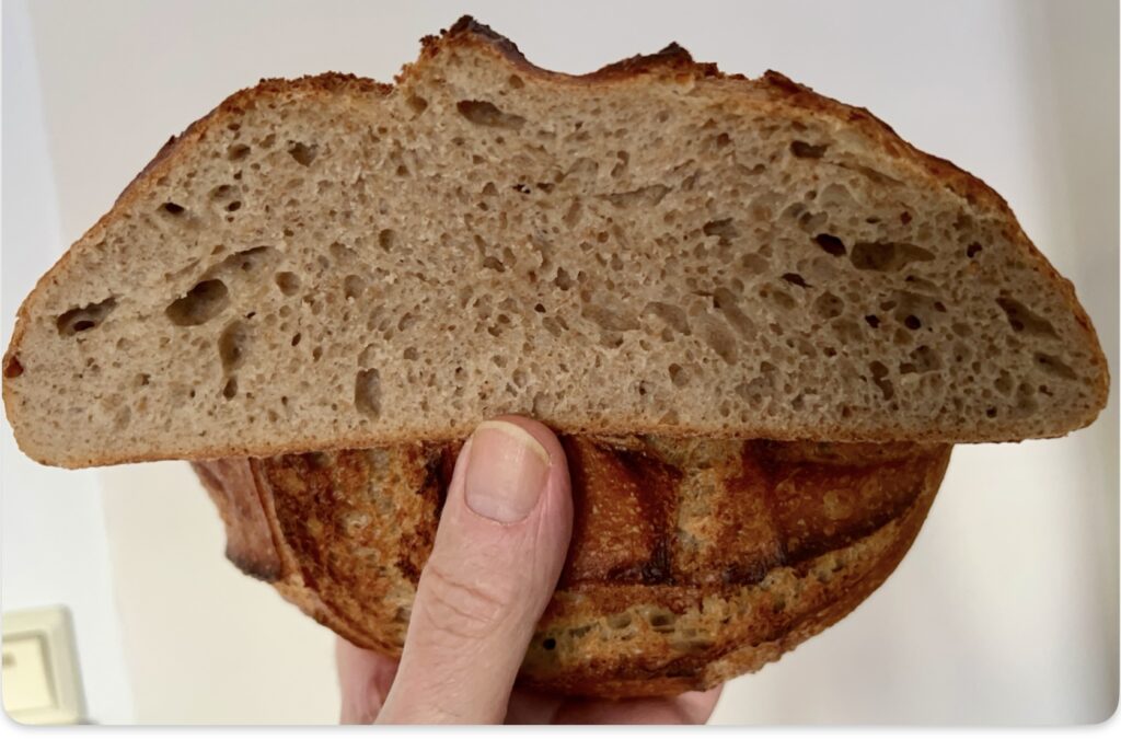 Taikinassa on noin 30% täysjyväspelttiä. ”Type 85” vehnäjauhona käytin hiivaleipäjauhoa. Toinen vaihtoehto olisi ollut käyttää seosta, jossa on 70% tavallista puolikarkeaa ja 30% täysjyvävehnäjauhoa. Tämäkin vinkki on Maurizion sivuilta. Muuntelua tarvitaan, koska jauhot eri maissa ovat erilaisia. Pidän Maurizion ”ThePerfectLoaf” -sivuston ja kirjan ohjeista ohjeista, koska niissä on esitetty selkeästi taikinanan ainekset ja prosessi ajoituksineen ja lämpötiloineen.