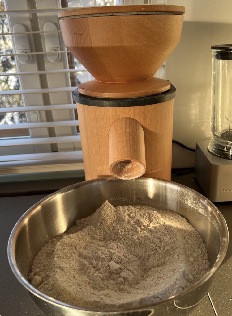 Aikomukseni oli tehdä täysjyvätaikina, muotoilla leivät koriin ja paistaa kylmälevon jälkeen. Suunnitelma muuttui vuokaleiviksi, koska taikina osoittautui löysäksi. Syynä ehkä kuoriosan sihtaus (8%) erilleen tai mittausvirhe tai liian korkea vesisuhde 85%. Yksijyvä ei ehkä ollut kovin janoista?